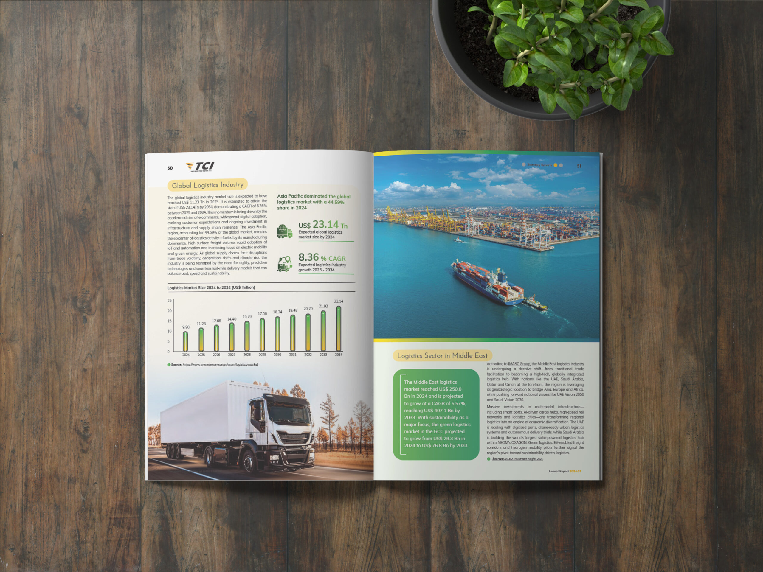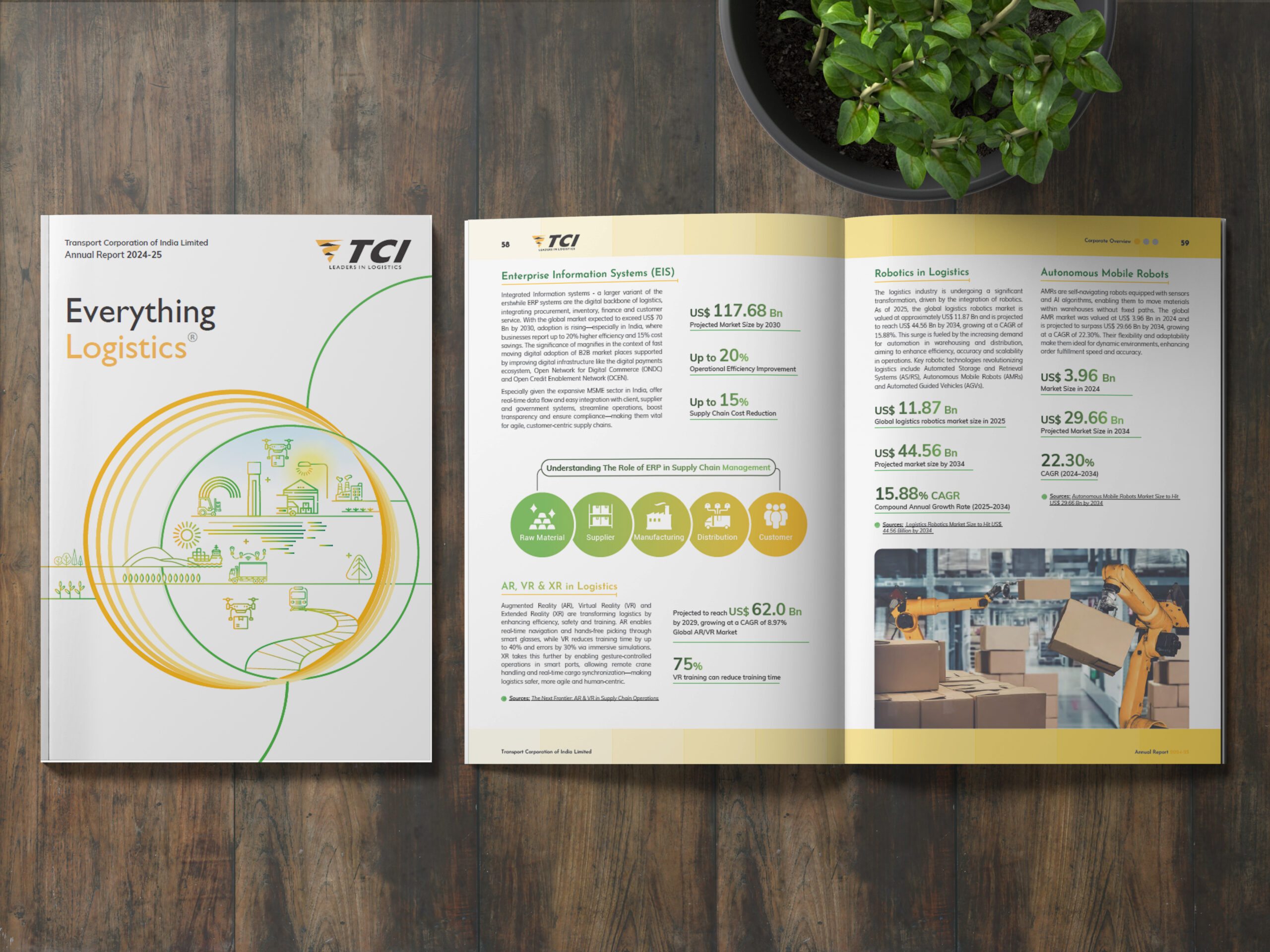 We worked with Transport Corporation of India (TCI) to create an insight-driven Annual Report that highlighted the company’s leadership in India’s logistics sector. By combining research-based analysis with refined design and clear messaging, we developed a narrative that showcased TCI’s performance, innovation focus and long-term strategic direction. The final report strengthened stakeholder understanding and reinforced TCI’s position as a forward-thinking industry leader.